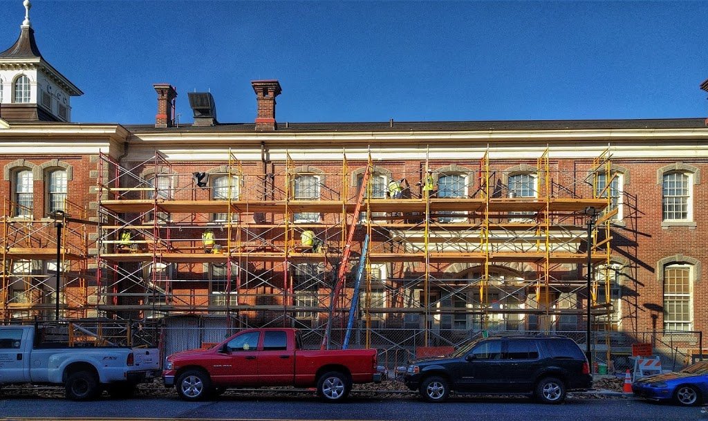 Brick Restoration on U.S. Navy building in the Philadelphia Navy Yard – Broad & Kitty Hawk Avenue – Nov 2015